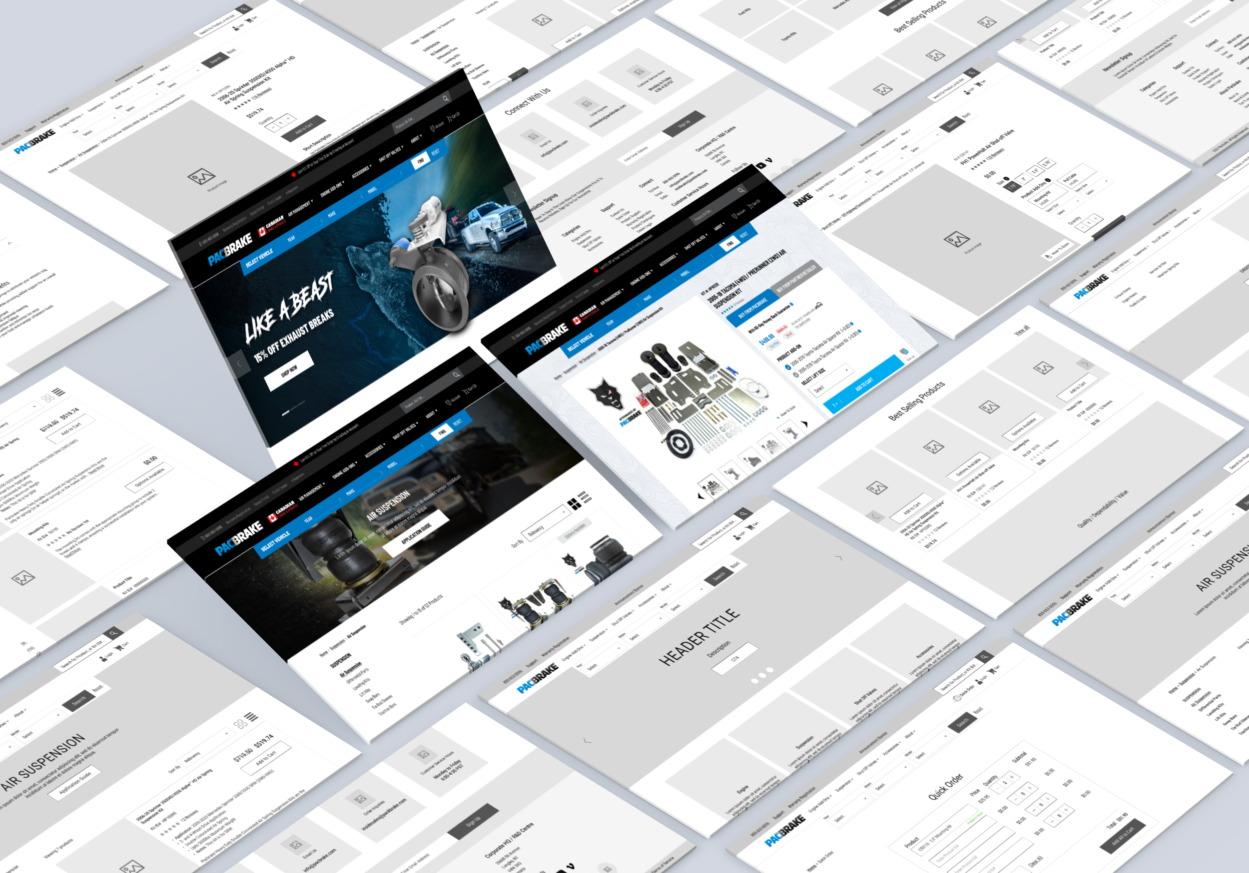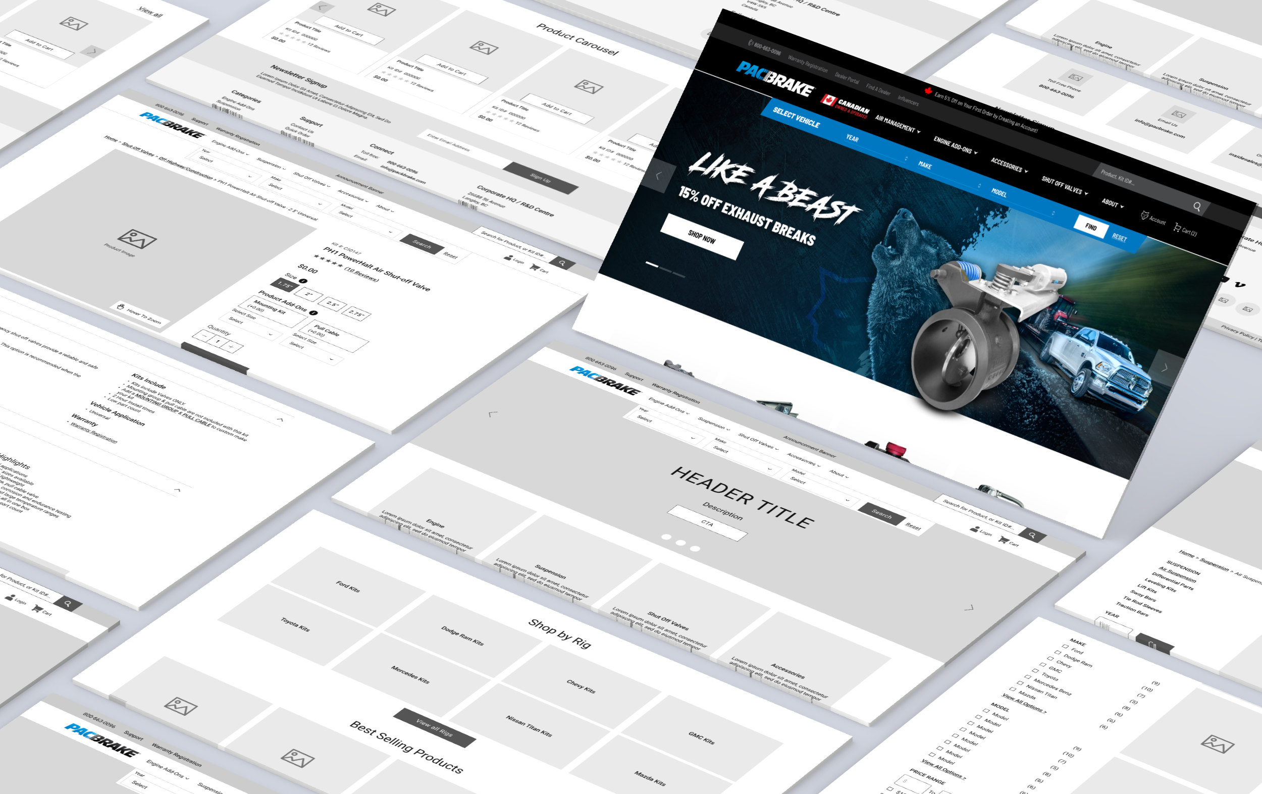 We aligned closely with Pacbrake on business goals, customer behaviours, and operational constraints. Product taxonomy was also a large part of discovery, which is working closely with the client to categorize and simplify the category setup. Discovery focused on how retail shoppers and dealer customers navigated the site, placed orders, and accessed product information. Key priorities included improving mobile buying flows, supporting dealer-specific needs, handling U.S. and Canadian content differences, and ensuring the platform could scale without ongoing workarounds.